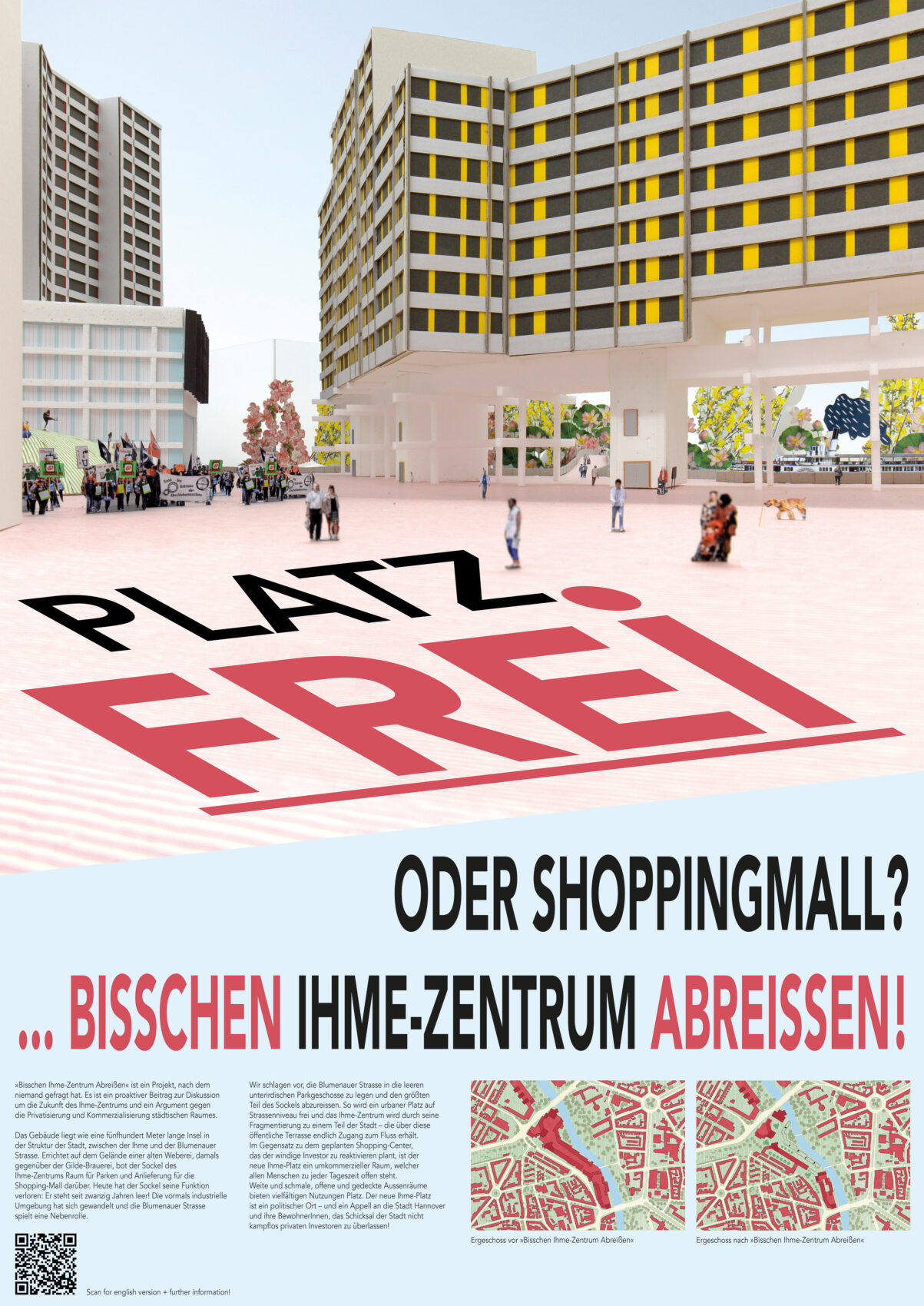 Bisschen Ihme-Zentrum abreissen” (tearing down a bit of Ihme Zentrum) is a project nobody asked for. It is a proactive contribution to the public debate about the future of Ihme-Zentrum and an argument against privatization of public space.