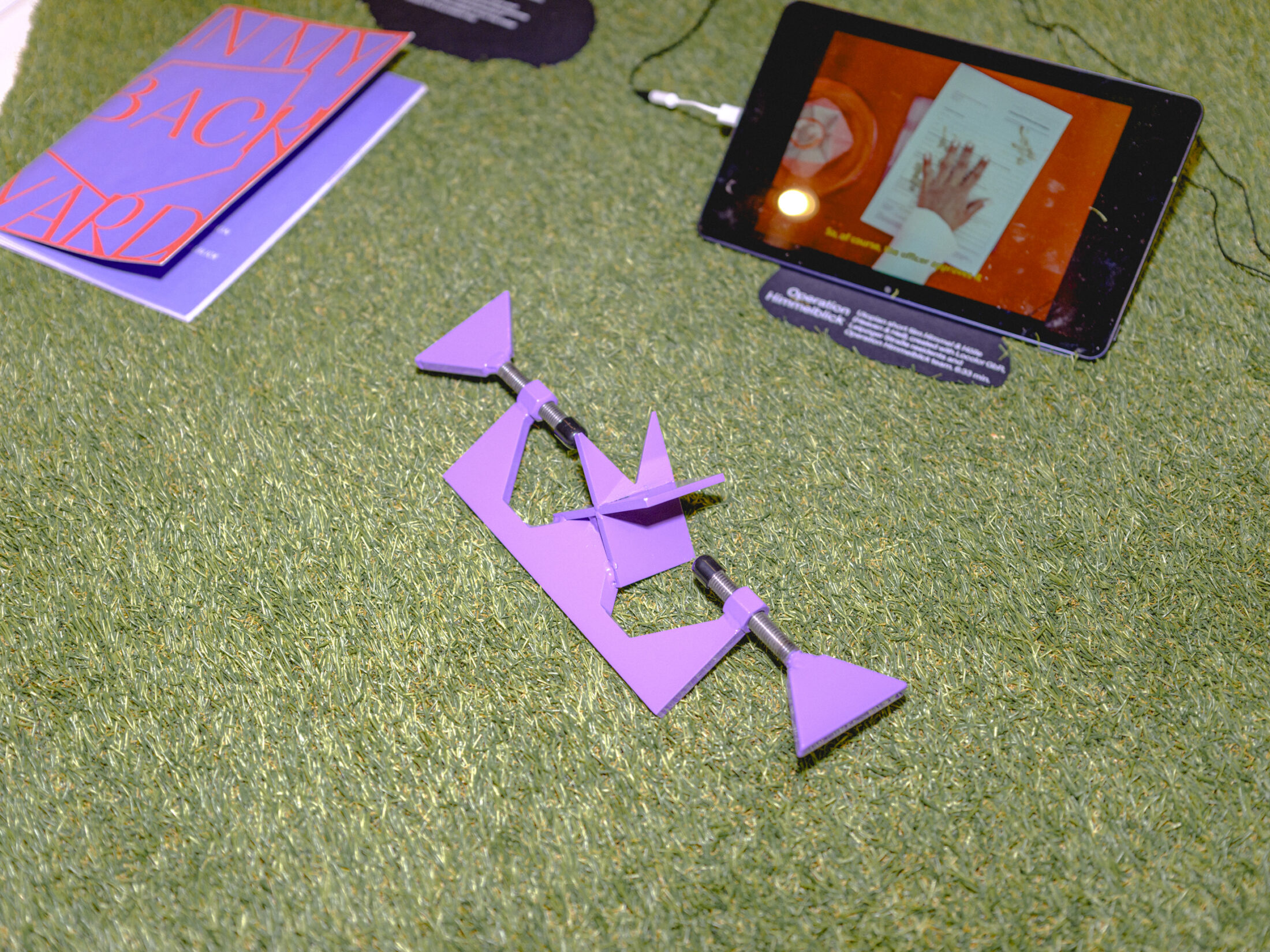 Ausstellungen sind oft aus Objekten mit kurzer Lebensdauer gemacht. Die meisten Ausstellungen existieren nur für einige Wochen oder Monate, bevor sie entsorgt oder für immer eingelagert werden. Die Szenografie für „Democratic Design“ reagiert darauf, indem sie mit dem arbeitet, was bereits vorhanden ist. Anstatt neue Elemente herstellen zu lassen, greift sie auf das eigene Lager der Aedes-Galerie zurück und verwendet dort vorhandene Rohre und Platten.