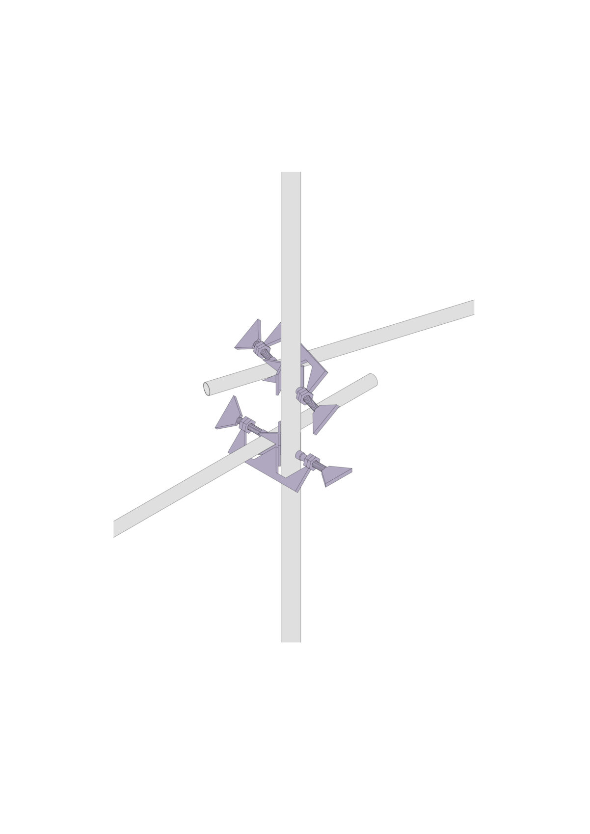Das einzige neue Gestaltungselement ist eine speziell angefertigte Klemme, die Rohre unterschiedlichen Durchmessers miteinander verbindet – zu einer dreidimensionalen räumlichen Struktur, die die 22 vorgestellten Projekte trägt.