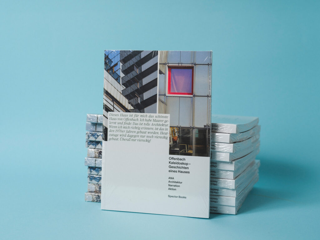 Research on the Gothaer House resulted in the publication “Offenbach Kaleidoscope: Stories of a House” (Spector Books, 2022). The book uses the building as a starting point for conversations that reveal personal and professional connections to it. These connections extend beyond the building’s reflective surface. The book deconstructs the house as part of a complex web of relationships. The goal is to broaden our perspective on a specific building and demonstrate the value of buildings within the context of their stories.