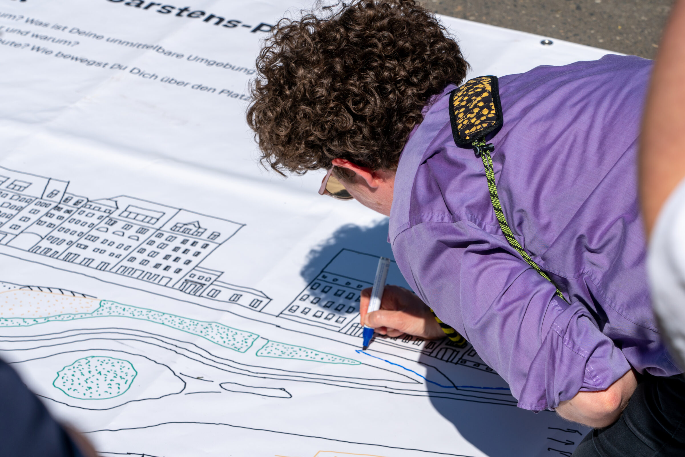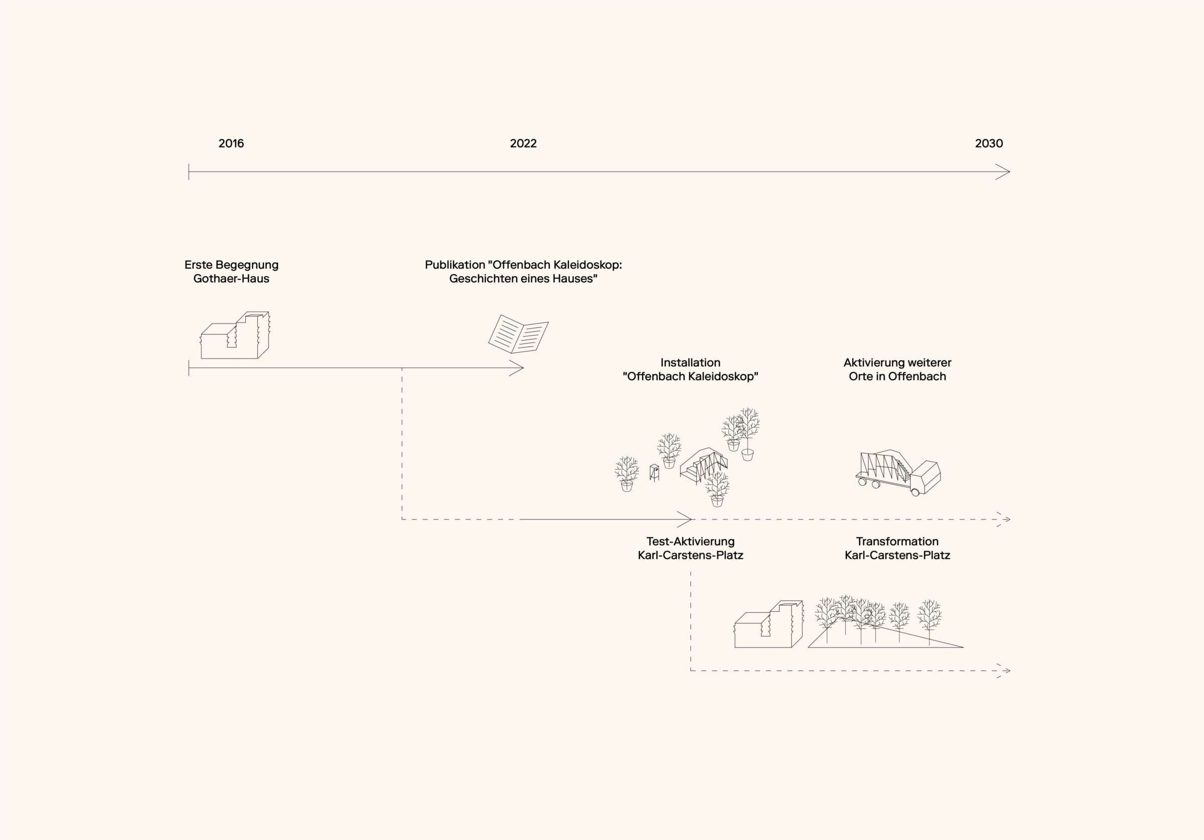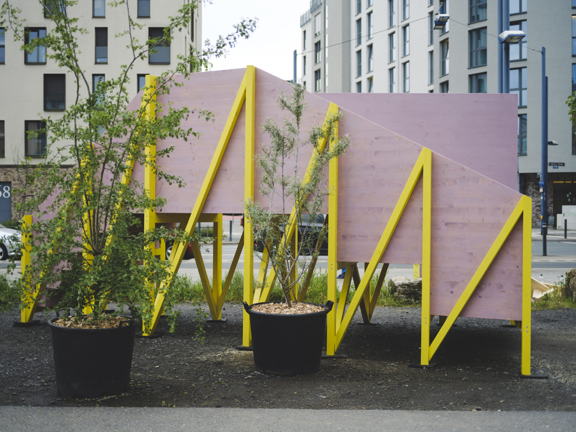 Diese Intervention stand im Kontext aktueller Veränderungen in der unmittelbaren Umgebung des Gothaer-Hauses: Neubauten entstehen, und der heutige Parkplat – der Karl-Carstens-Platz – soll künftig in einen öffentlichen, autofreien Raum überführt werden. In Zusammenarbeit mit dem Amt für Planen und Bauen der Stadt Offenbach wurden dafür während der Sommermonate 2023 sechs Parkplätze temporär gesperrt und als öffentlicher Raum erprobt – als ein Testfeld, um für die zukünftige Transformation des Ortes zu lernen.