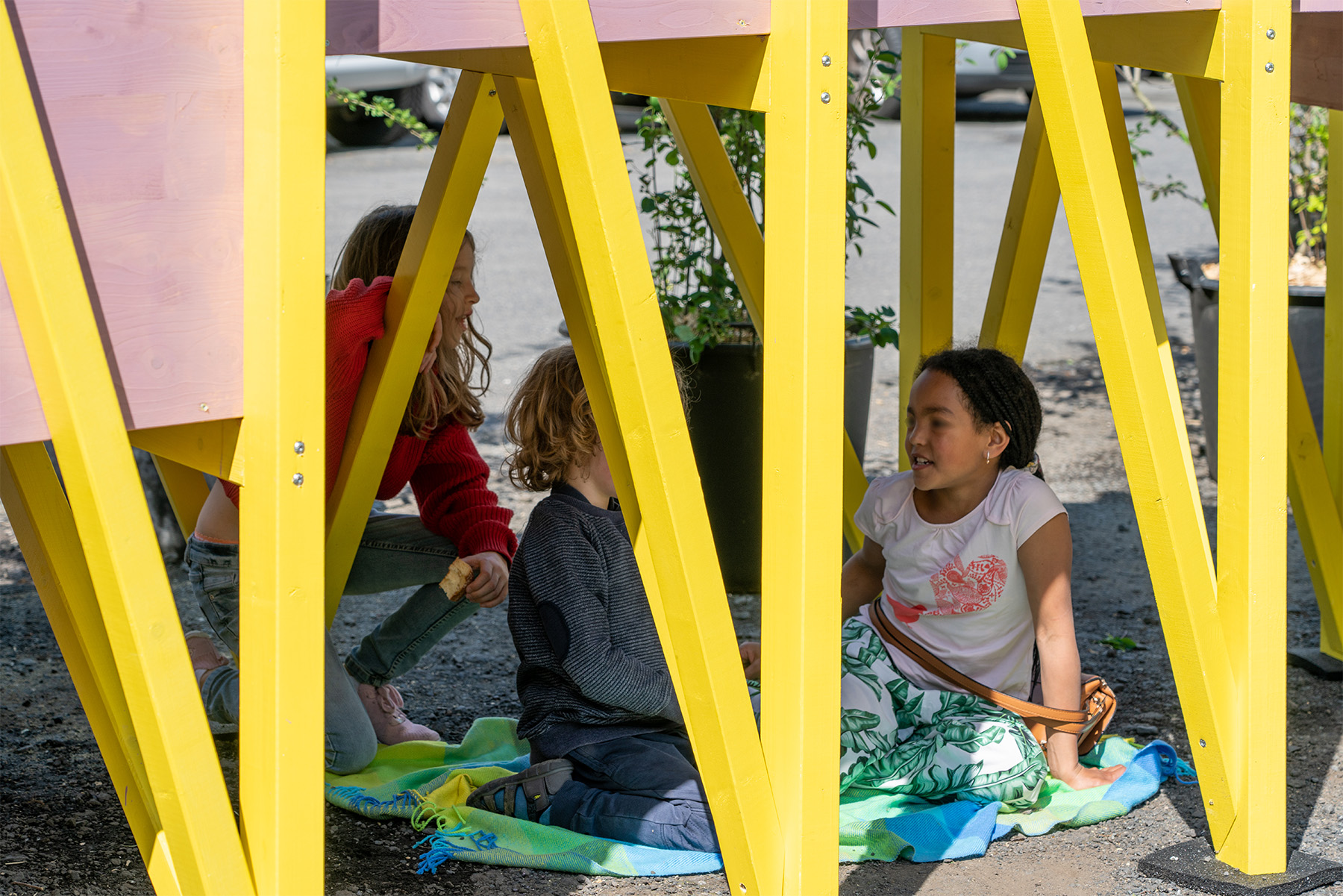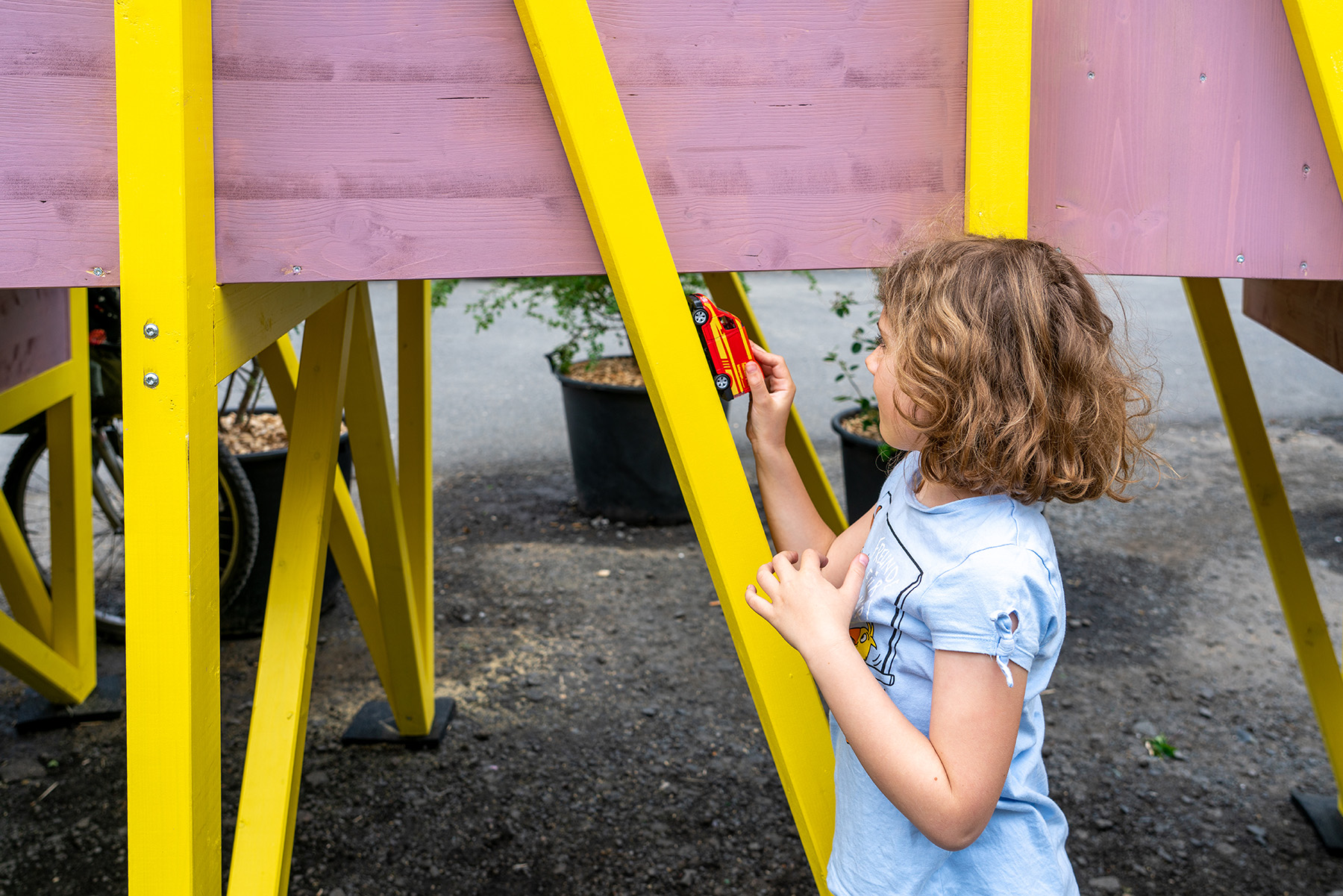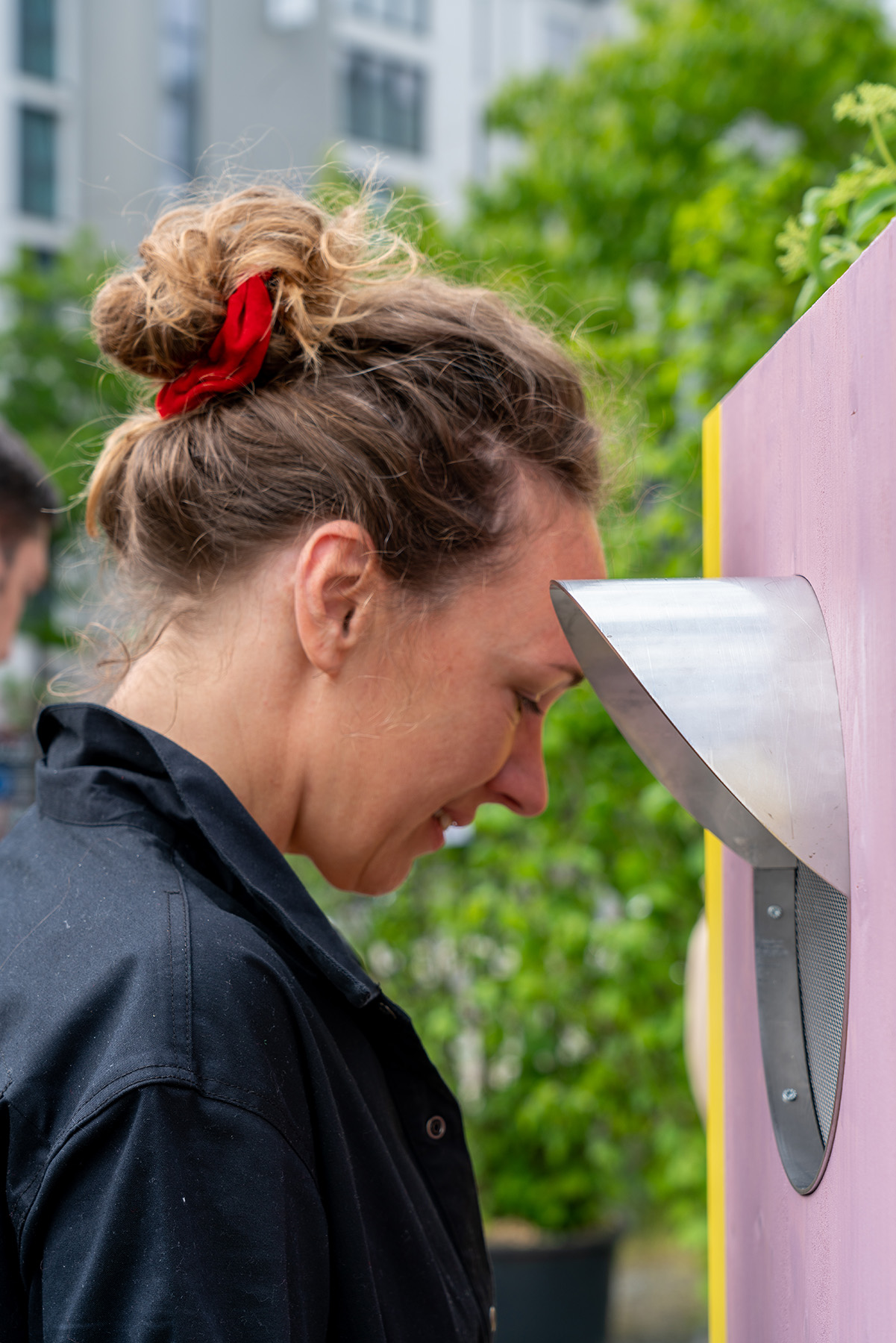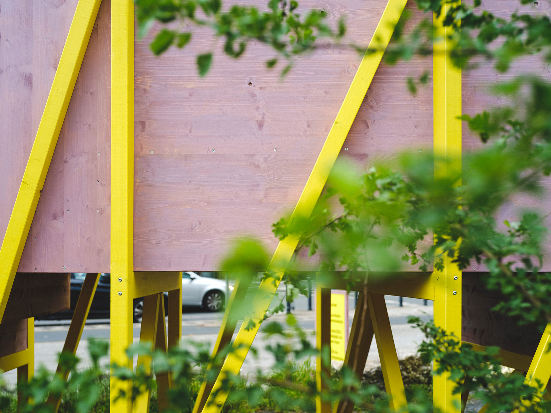 A tribune that invites to sit, stay, and reorientates the view. A sound box that tells stories of the place. Temporary vegetation which provides shade and becomes a habitat for insects and small animals.